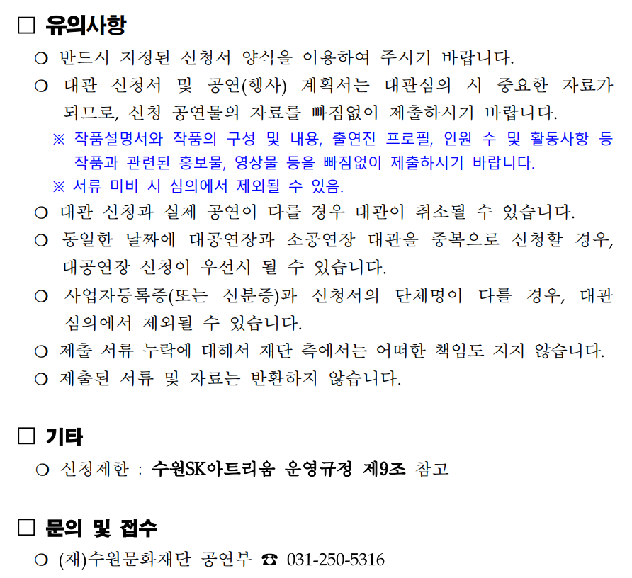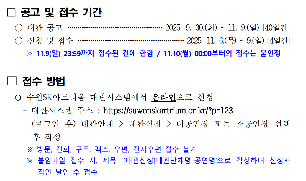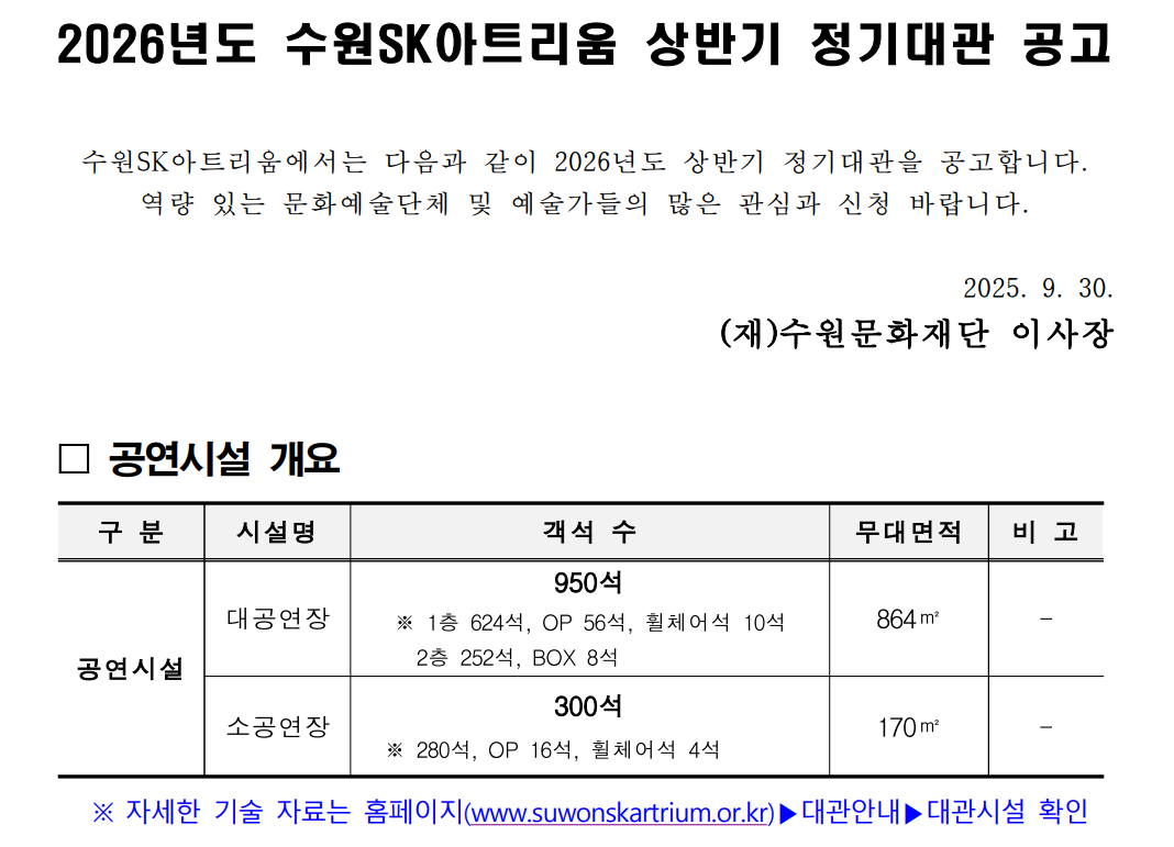 2026년도 수원SK아트리움 상반기 정기대관 공고