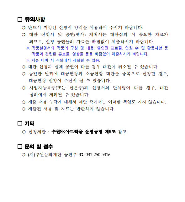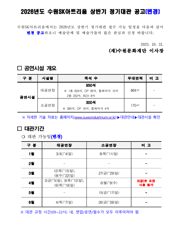 2026년도 수원SK아트리움 상반기 정기대관 변경 공고