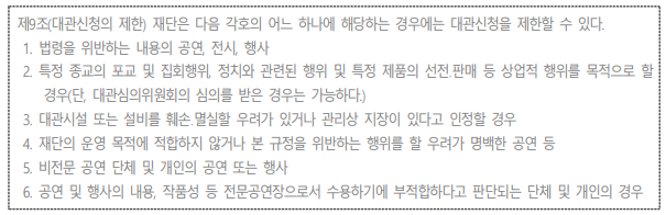 □ 대관신청의 제한