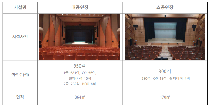 ※ 대·소공연장 신청 일정이 경합될 경우, 대공연장을 우선으로 함.